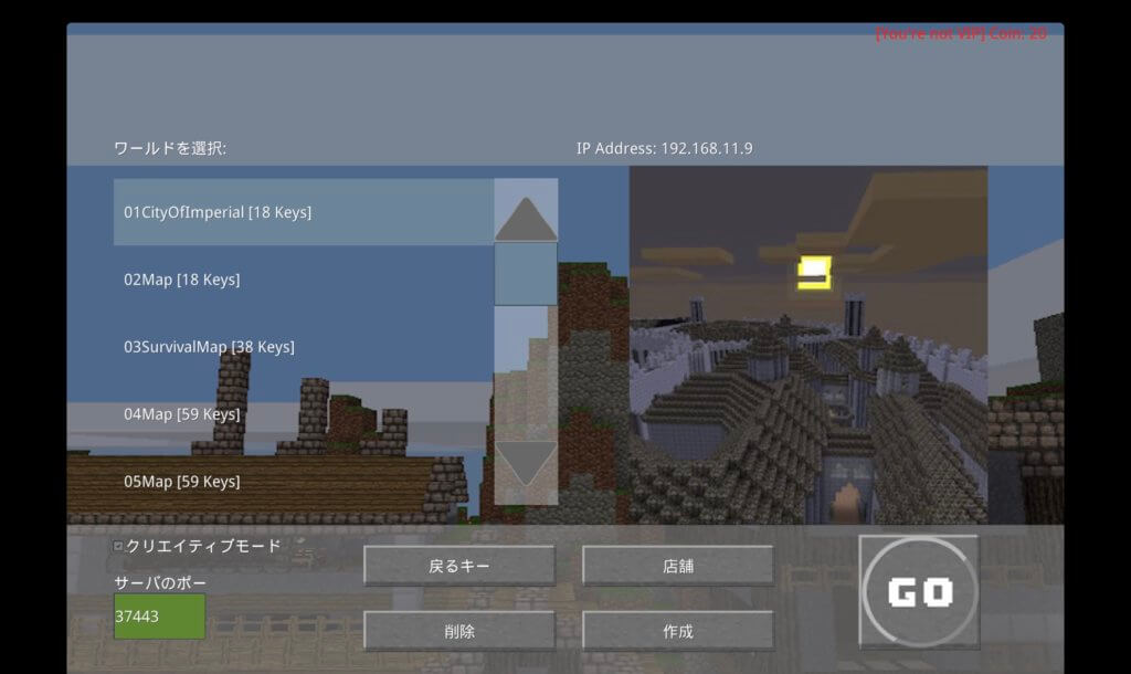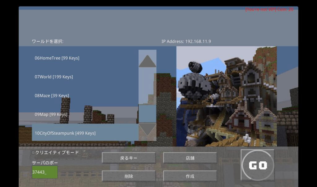 とりあえず一番下の10CityOfSteampunk[499 Keys]というワールドを選択!一応クリエイティブモードのボックスにもチェック入れときます。