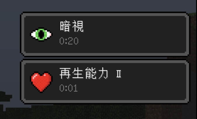 八尺瓊勾玉をインベントリに入れると再生能力Ⅱで回復します。また八咫の鏡をインベントリに入れると暗視の効果が付きます。さすが三種の神器っていう感じですね笑