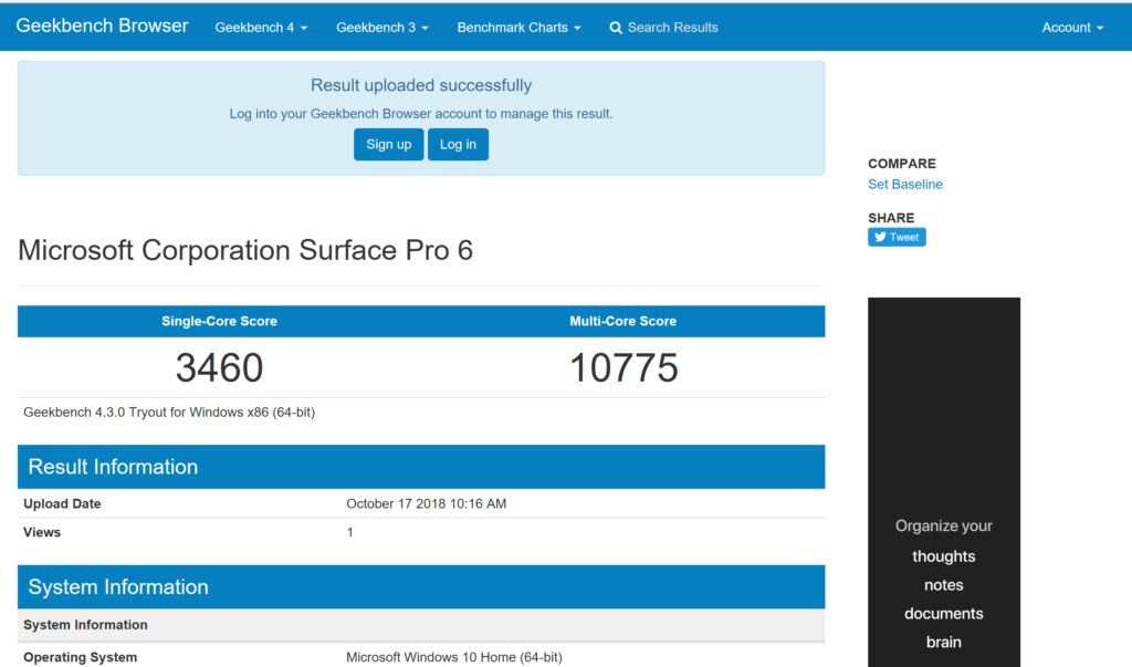 シングルスコア3460,マルチスコア10775です!!!さすが第8世代のCPU。恐るべし性能!!では今回はこの辺で終わります。