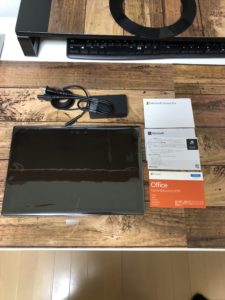 本体の箱には、surface pro6+充電器+officeプロダクトキー+簡単な説明書です